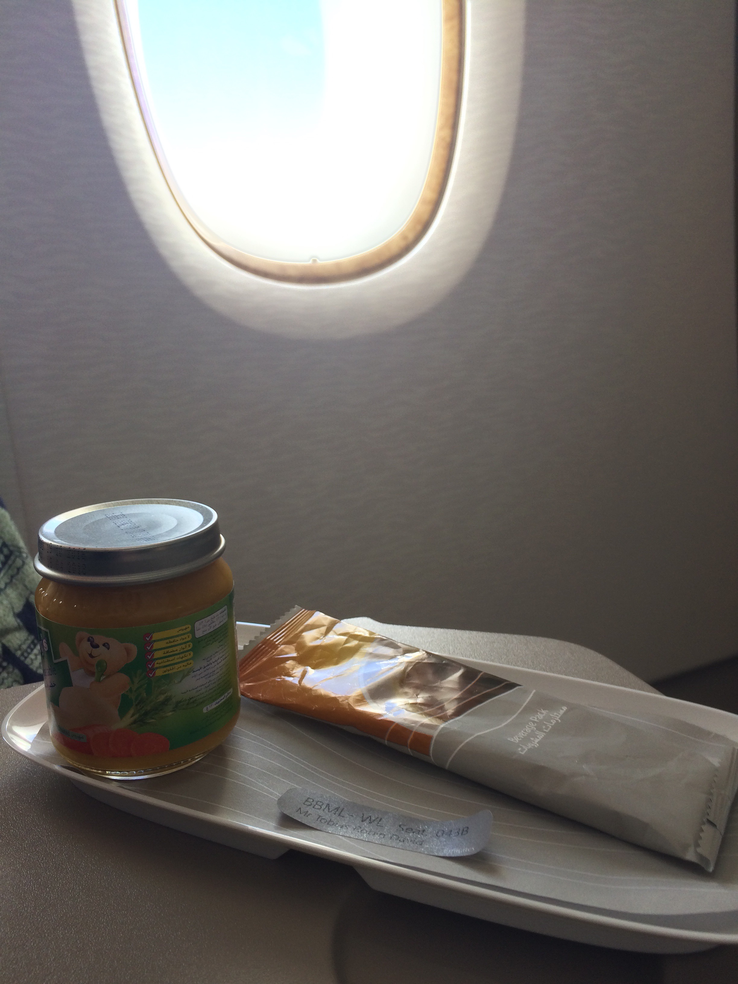 Paul flirtet natürlich schon beim Einsteigen ins Flugzeug mit den Stewardessen und bekommt gleich eine Tafel Schokolade geschenkt. „Aww, he is so cute! Is he allowed to have some chocolat?! – Erm, usually not.“ Zack, 2 Minuten später verdrückt er mit mir seine erste Tafel australische Fairtrade-Schokolade… Schoki, Spielzeug, Brei auf eigenem Tablett, für den Mini ist wieder gut gesorgt!
